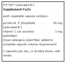 What Is It? P5P50 is pyridoxal 5` phosphate (P5P), the active metabolite and predominant form of plasma pyridoxine (vitamin B 6 ). Uses For P5 P50 Menstrual Comfort: Clinical trials have indicated that vitamin B6 may support menstrual comfort, in part by maintaining healthy neurotransmitter unction to promote healthy mood and mental functioning. Nervous System Support: Various Physiological Support Properties: What Is The Source? Pure Encapsulations P 5 P50 is synthetically derived.C (ascorbyl palmitate) is derived from corn dextrosefermentation and palm oil.derived from pine cellulose. Are There Any Potential Side Effects Or Precautions? If pregnant or lactating, consult your physician before taking this product.6 supplementation should notify their health professional, as vitamin Recommendations: Pure Encapsulations recommends 2 capsules per day, in divided doses, with meals.Suppliment Facts